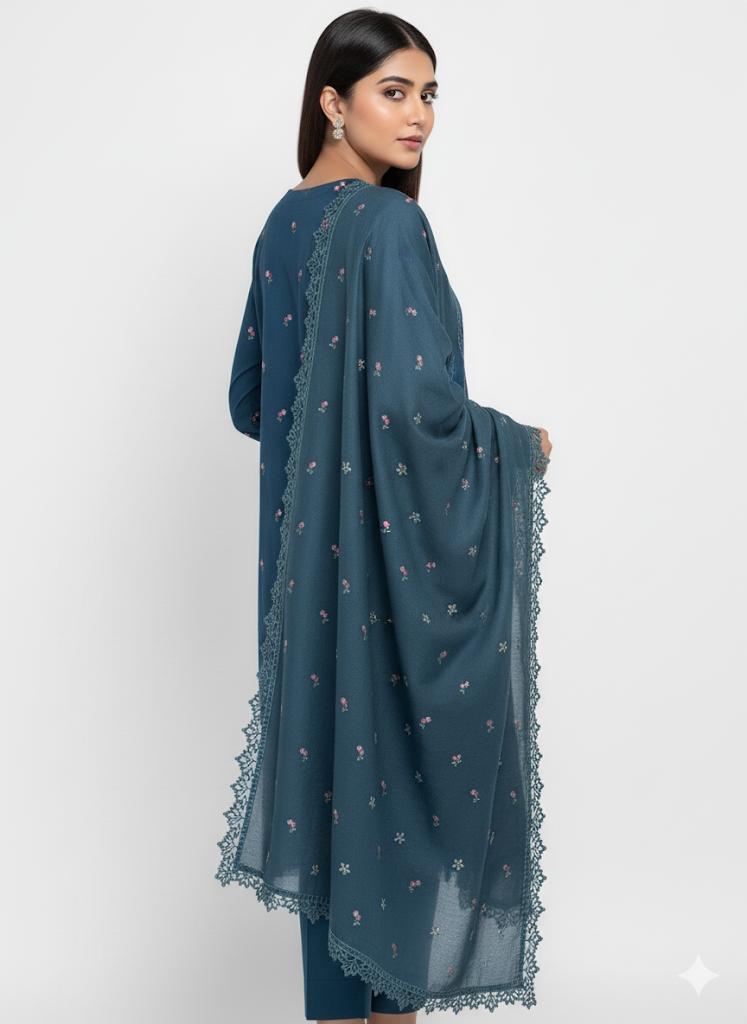 - EMBROIDED DHANAK 4 SIDED PATCH SHAWL