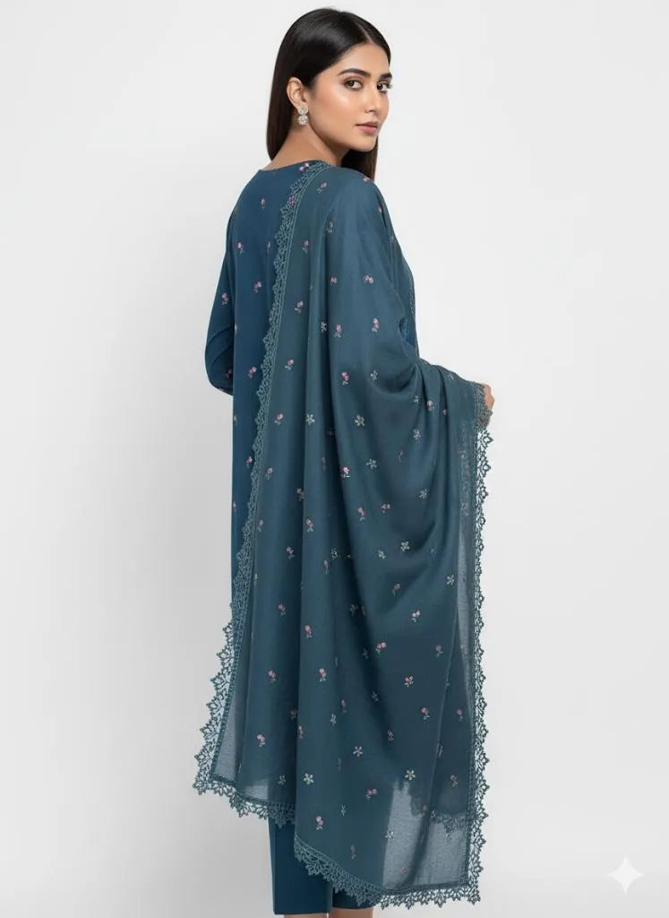 • EMBROIDED DHANAK 4 SIDED PATCH SHAWL